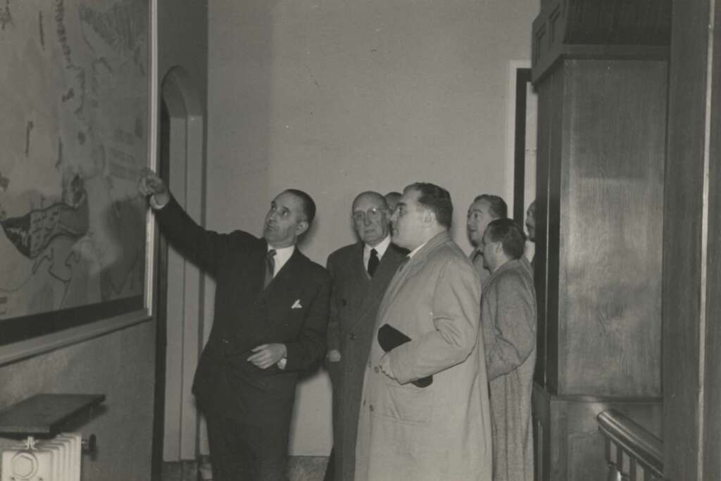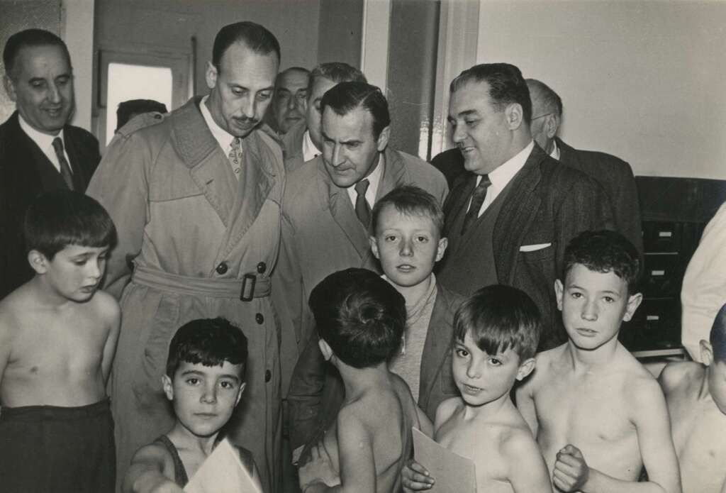 José María del Moral y otras autoridades charlando con un grupo de niños