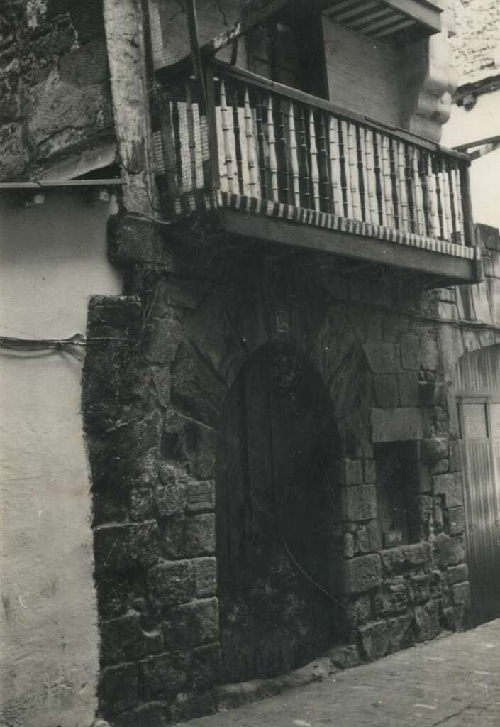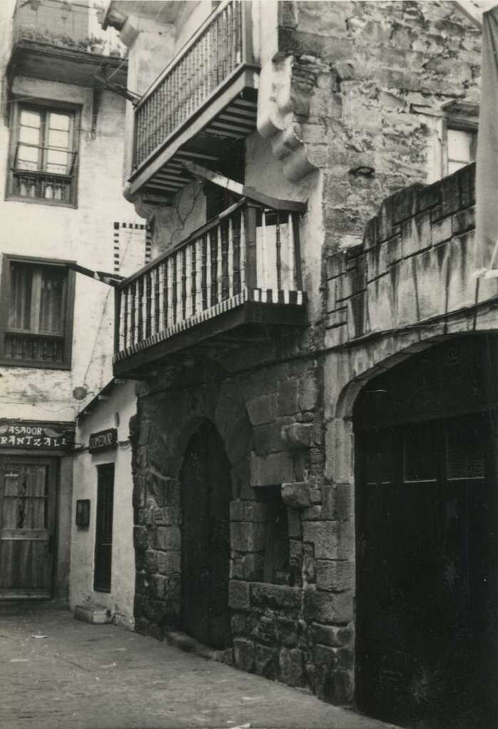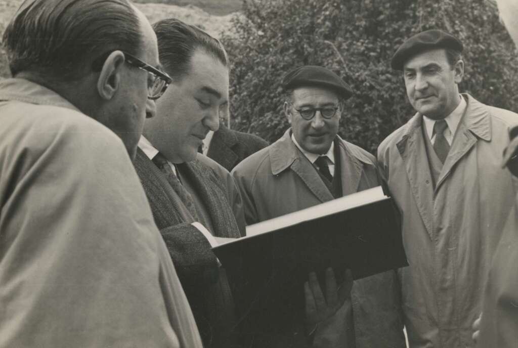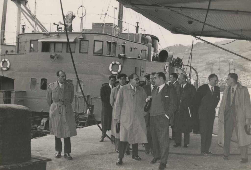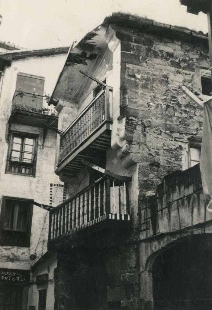 Barrio de Andonegi de Trintxerpe. En primer término, la iglesia y escuelas del Virgen del Carmen, campo de fútbol y el frontón. Al fondo, Bidebieta