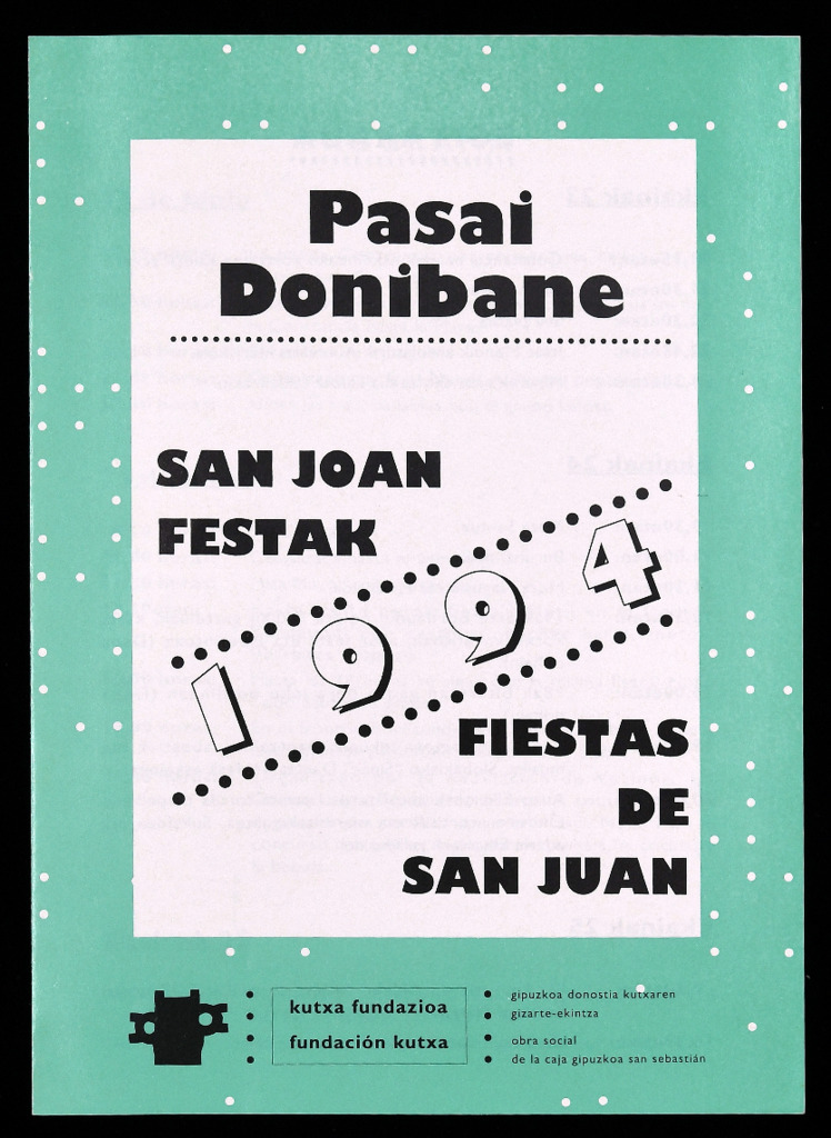 1994ko Pasai Donibaneko jaien egitaraua. Santiago, San Juan eta San Inazio.