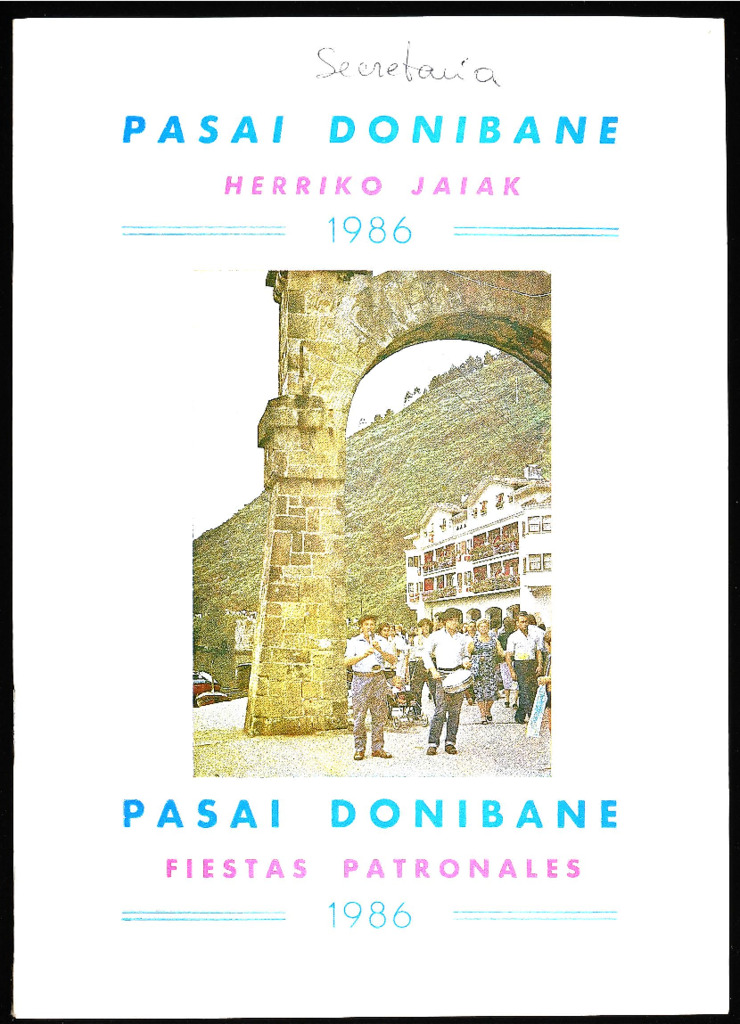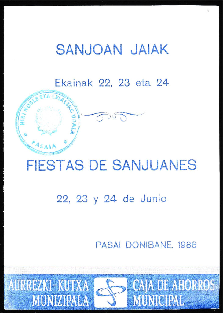 1986ko Pasai Donibaneko jaien egitaraua. Santiago, San Juan eta San Inazio.