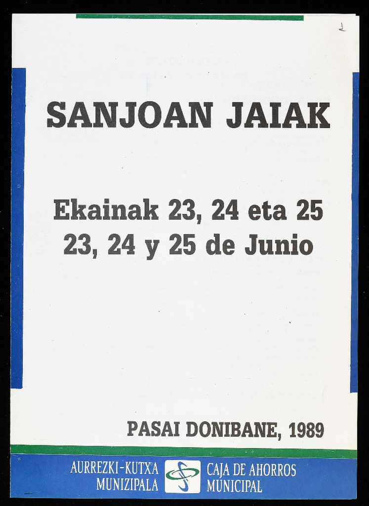 1989ko Pasai Donibaneko jaien egitaraua. Santiago, San Juan eta San Inazio.