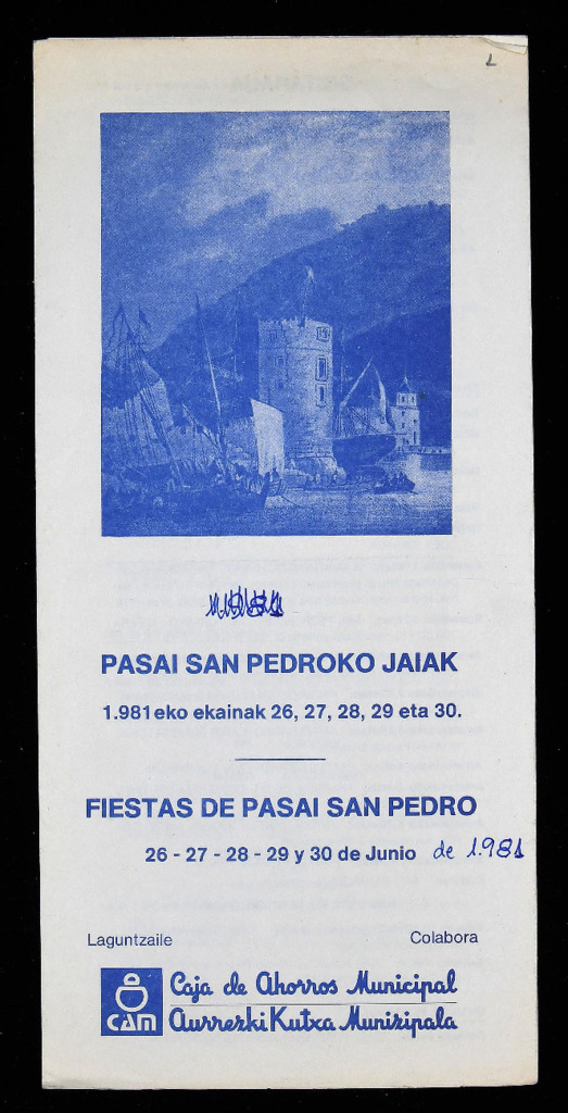 1981ko Pasai Donibaneko jaien egitaraua. Santiago, Santa Ana eta San Inazio jaiak.