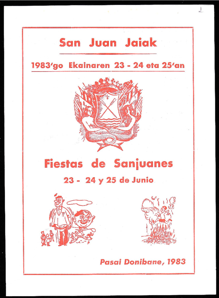 1983ko Pasai Donibaneko jaien egitaraua. Santiago, Santa Ana eta San Inazio jaiak.