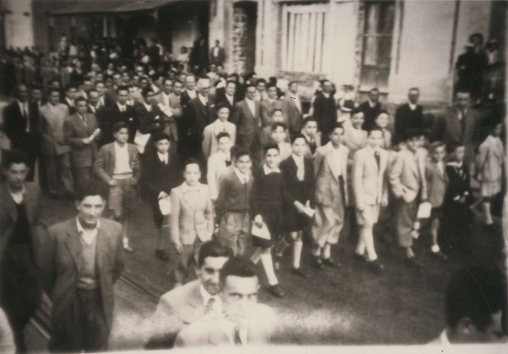 Desfile de niños por las calles de Pasai Antxo, con diplomas en las manos
