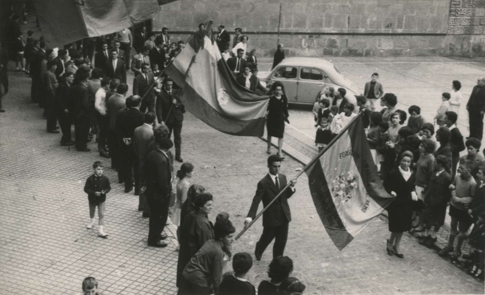 Desfile de las banderas llegando a la plaza de Santiago de camino al Ayuntamiento