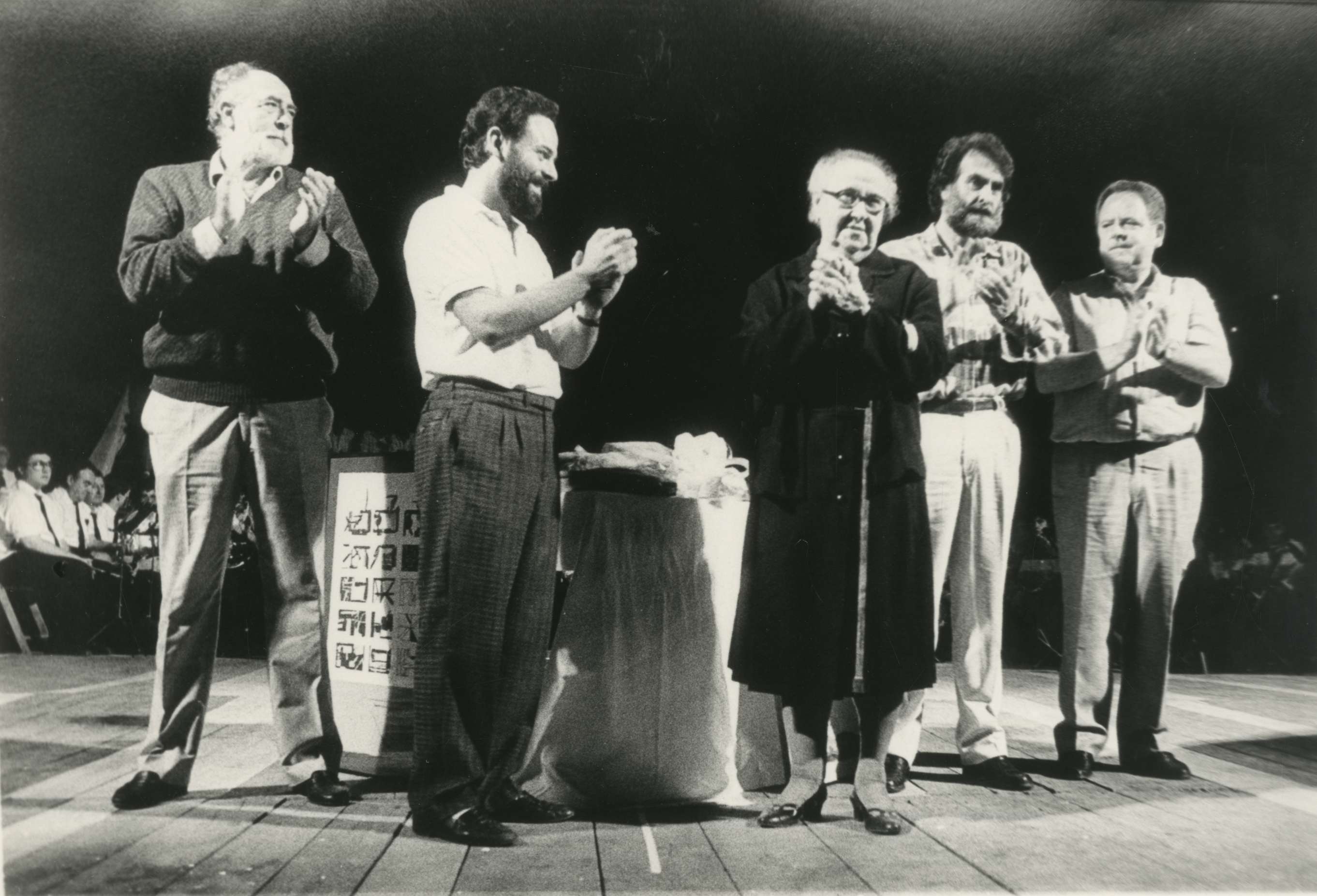 Homenaje a Usandizaga en el centenario de su nacimiento y Cincuentenario del Bombardeo de Gernika : el alcalde Xabier Portugal y Néstor Basterretxea, entre otros, en el acto de homenaje