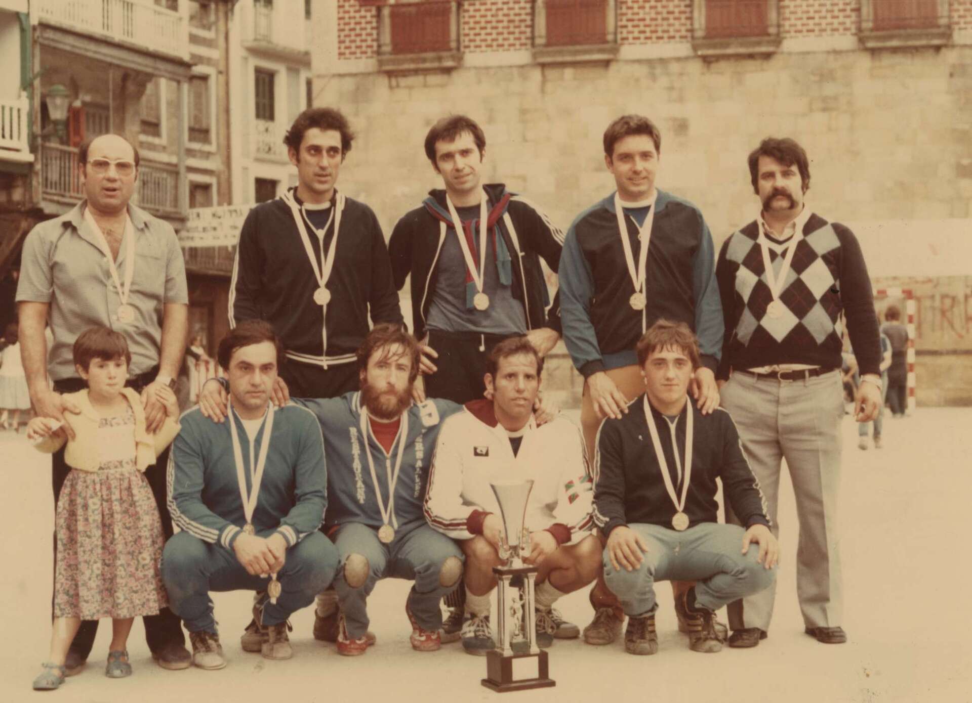 CD Millonarios. Campeón Temporada 1980. De pie, de izquierda a derecha, Xoto (entrenador), Taberna, Isasi, Gorostidi, Telex (preparador físico). Agachados, de izquierda a derecha, M.A. García, Cámara, Arrizabalaga y Lopetegui