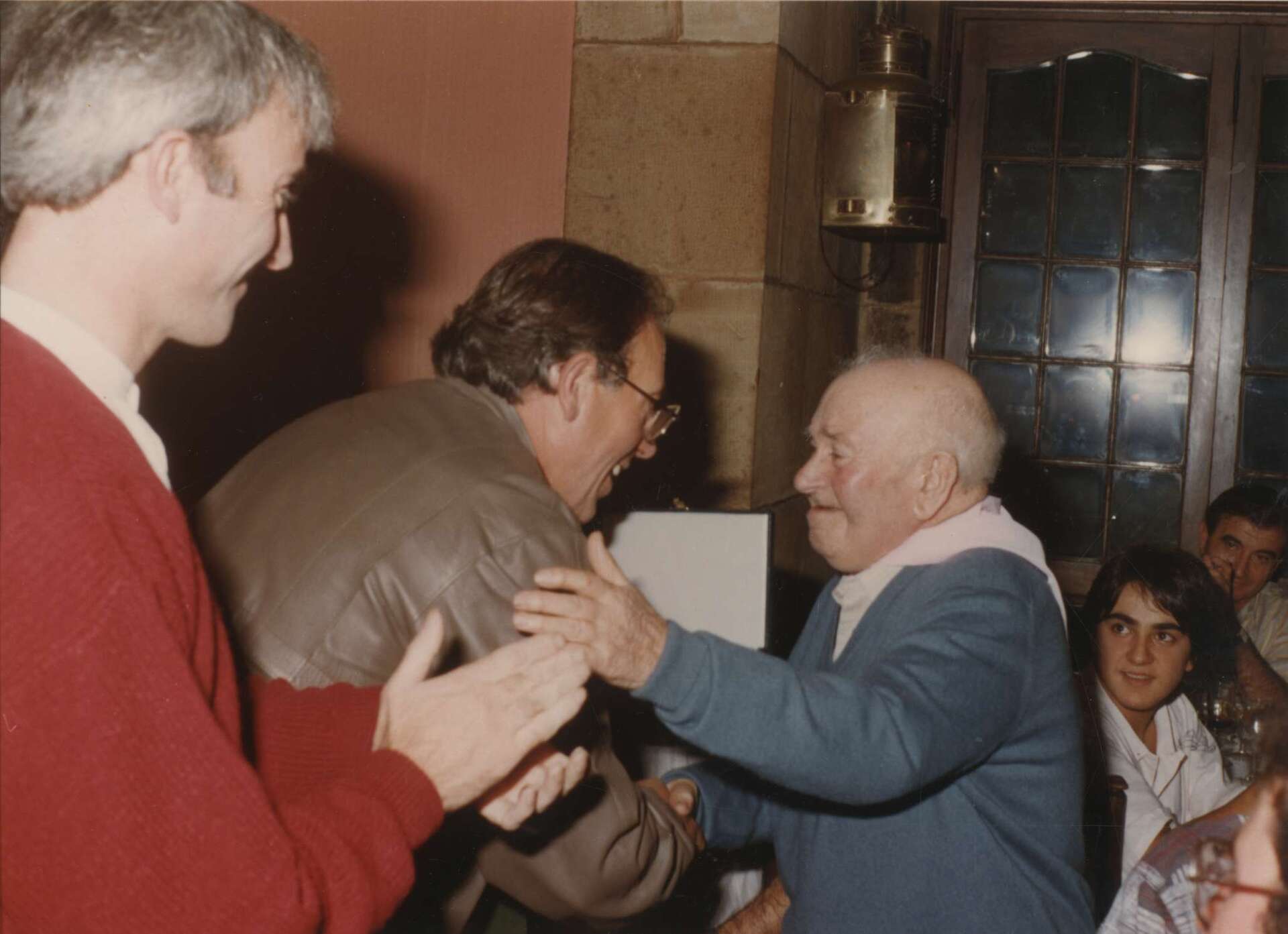 Antiguos remeros de Pasai Donibane recibiendo una placa conmemorativa