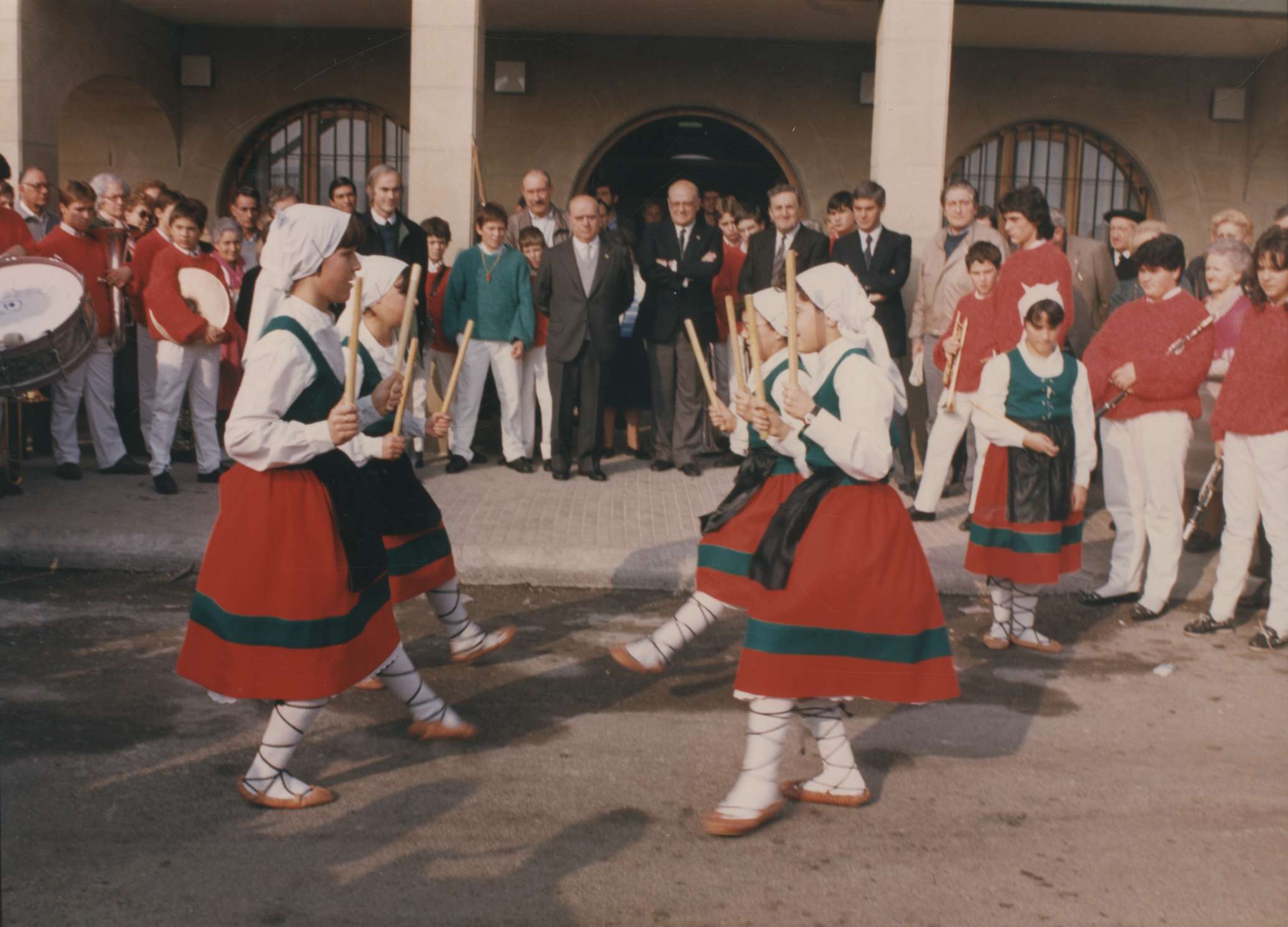 Makil-dantza a las autoridades durante la inauguración de la residencia de ancianos de Pasai San Pedro