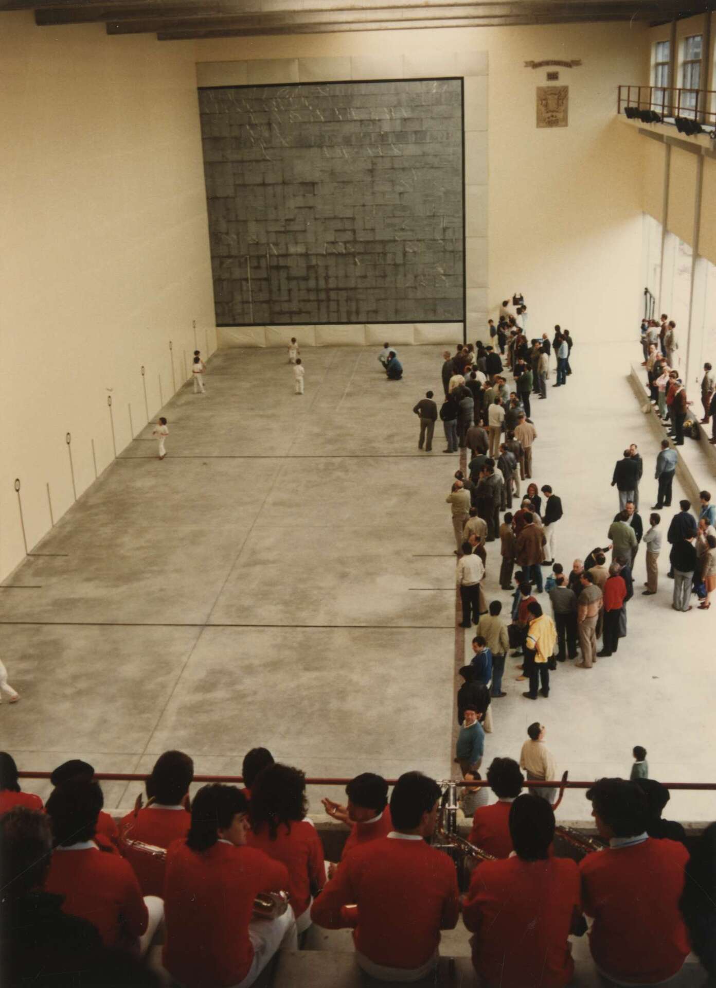 Niños jugando un partido de pelota para inaugurar el frontón cubierto